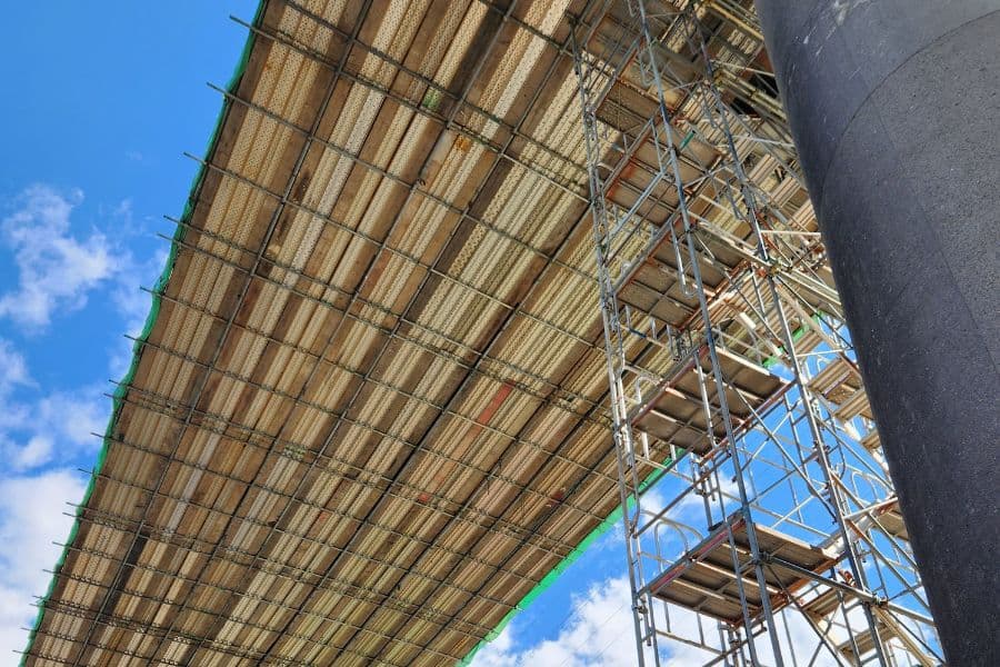 足場工事とは、建物や構造物の廻りに作業用の床を設置する工事のことです。足場には様々な工法がありますが、弊社では現場に適した最適の工法で施工します。マンション等の建築物廻りの外周本足場、プラント内の単管本足場や単管吊足場、橋梁工事における単管吊棚足場など、多種多様な現場において御対応いたします。