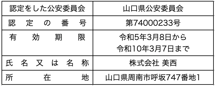 警備業者認定番号